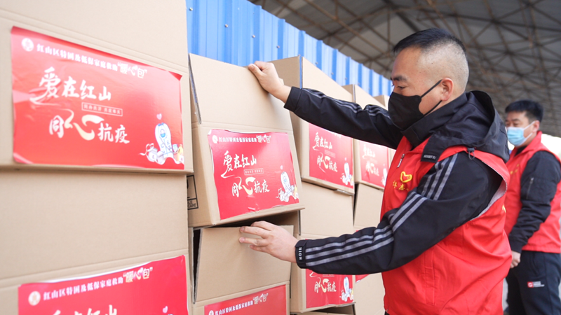 送暖爱心服务队工作人员准备“暖心包”(红山区融媒体中心供图)