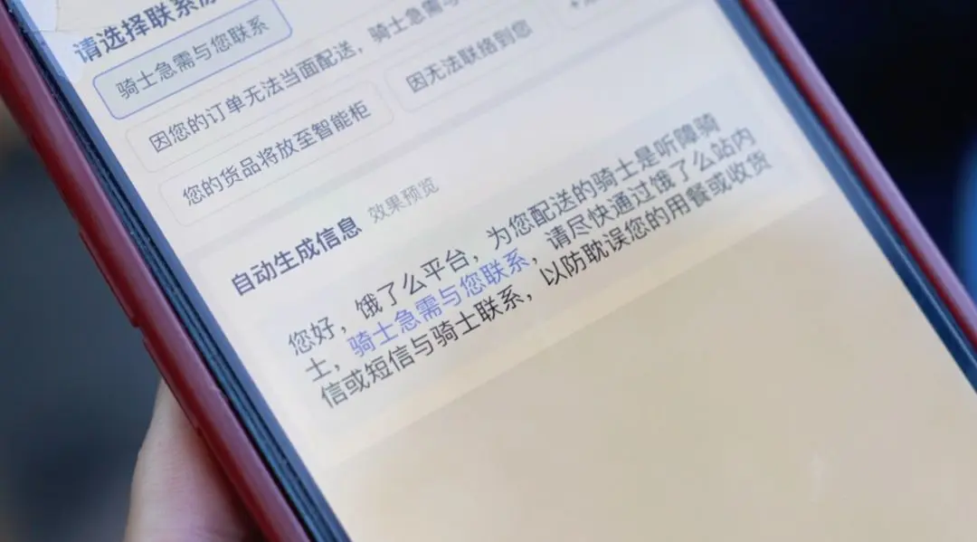 为了帮助他们更顺利送餐,饿了么为无声骑士上线了无障碍沟通功能,包括文字转语音的一键外呼、在线聊天语音转文字、日常电子沟通卡等等。