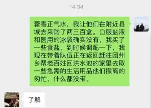 王刚偶尔会在朋友圈中分享救灾人的日常:“不要问我什么时候返程,聊天记录里面记载的就是救灾人的日常,想尽各种办法,全力以赴,这就是我们的努力。”人员转移、物资发放、道路清淤......每一次逆流而上,都是他们用汗水和坚守诠释着对生命最深的敬畏。而救援现场的一口泡面,则成了他们一天中为数不多的温暖时刻。撤出现场后找到一处简易的仓库落脚休息片刻,便能让他们感到非常满足。休整过后,他们又将向下一个任务出发......
